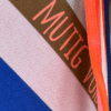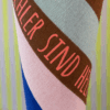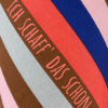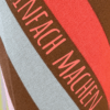 Design:Gestreift in Rot, Rosa, Braun und Blau mit hellroter Schrift